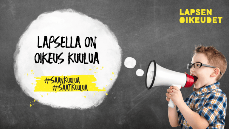 Lapsen oikeuksien viikko on jälleen 17.–23.11. Tänä vuonna viikon teemana on lapsen oikeus kuulua. Teemalla on kaksi merkitystä: lapsella on oikeus kuulua yhteisöön ja yhteiskuntaan, sekä toisaalta oikeus tulla paitsi nähdyksi, myös kuulluksi.